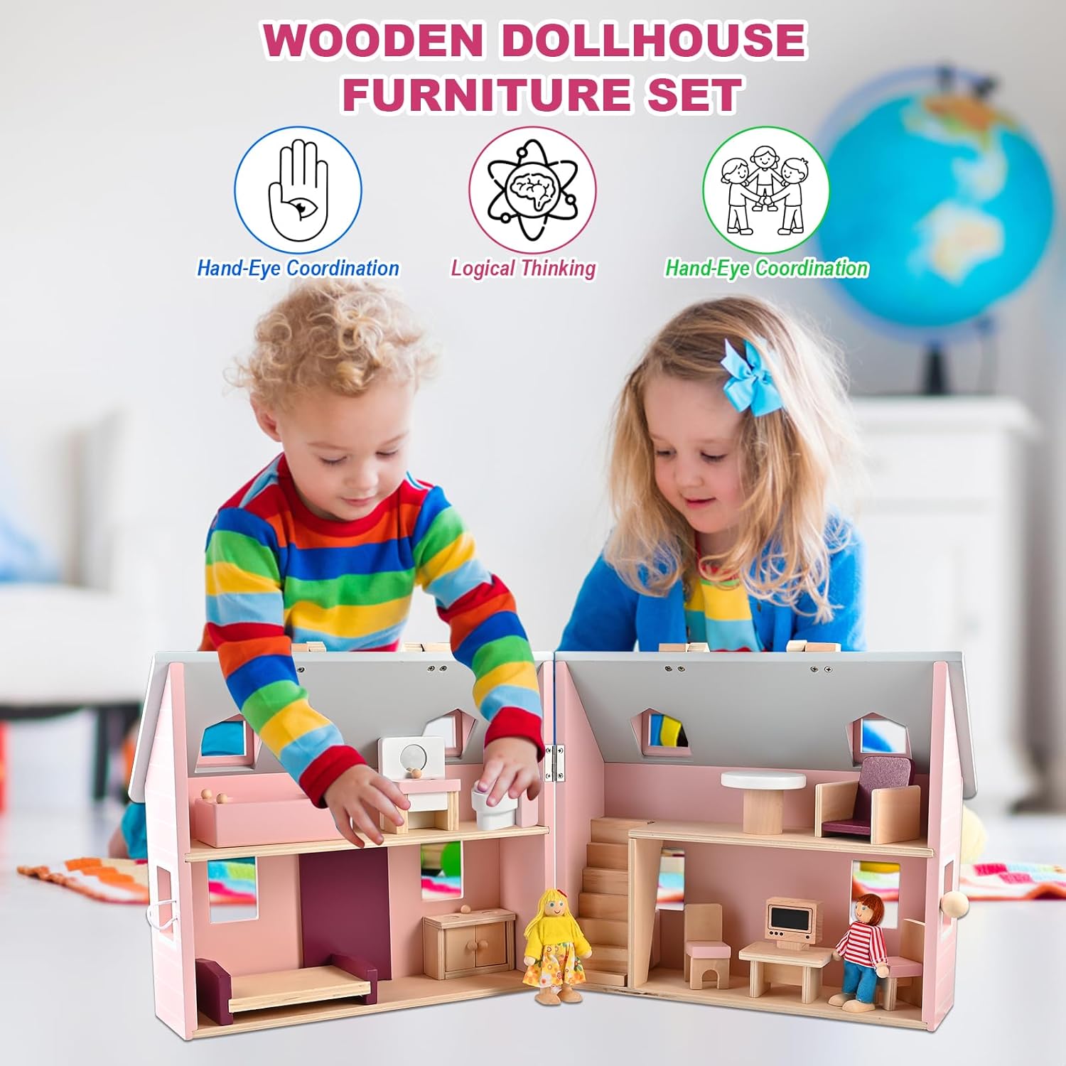 | Included Components | Product includes: Table*1, Chairs*2, Toilet, Bathtub, Vanity, Bed, TV, TV Stand, Sofa, Kitchen Counter, and 2 cute dolls. |