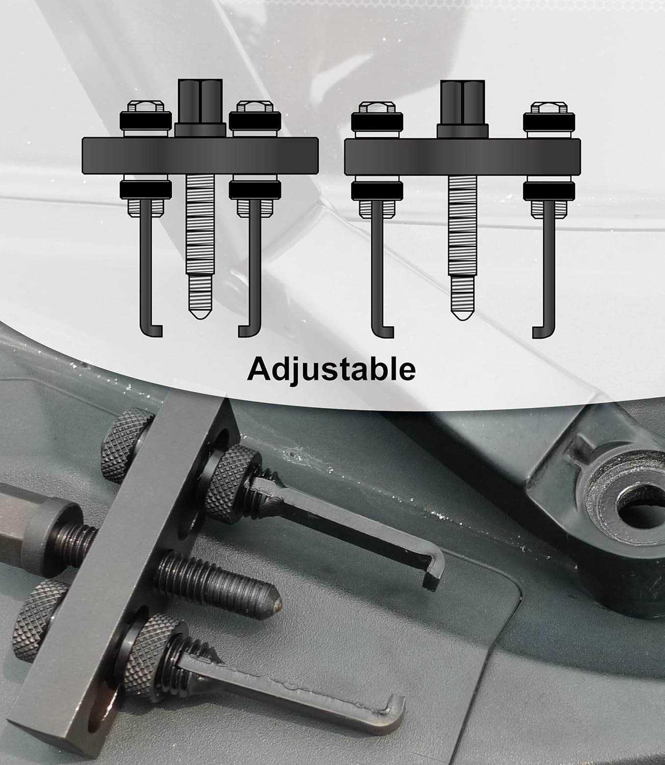 Universal application and for both front and rear wiper arms with 4 cup-type removers and 1 puller.Cup-type removers have adjustable bolts to fit wiper arms with various sizes and situations. They come in four sizes - Ø1.18, Ø1.37, Ø1.57, Ø1.81 inchesPuller with detachable legs are suitable to work in tight spaces as found on some compact cars.